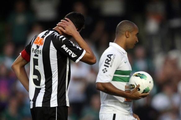 O Coritiba aproveitou esse desligamento do time mineiro e durante os primeiros minutos pressionou demais a defesa alvinegra com jogadas agudas pelas pontas com Rafinha, Everton Ribeiro, todas elas coordenadas pelo experiente Lincoln que, apesar da idade avançada, é um elemento importante de organização do meio de campo do Coxa.O ímpeto do Coritiba foi premiado com um pênalti cometido em cima de Everton Ribeiro, por Fillipe Souto. Deivid, que, bem como no Flamengo funciona mais como um figurante em campo, bateu bem e abriu o placar no sul do país.